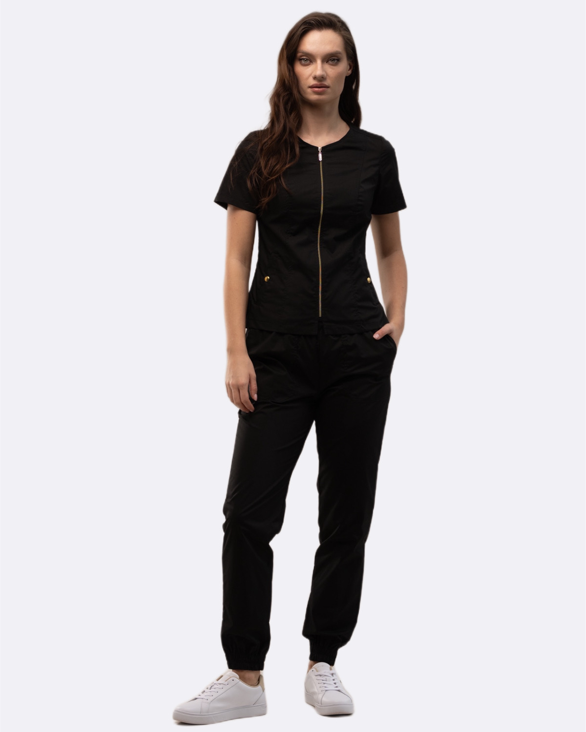 - Popis: Zkrácená zdravotnická halena s centrálním zapínáním na elegantní zlatý zip.